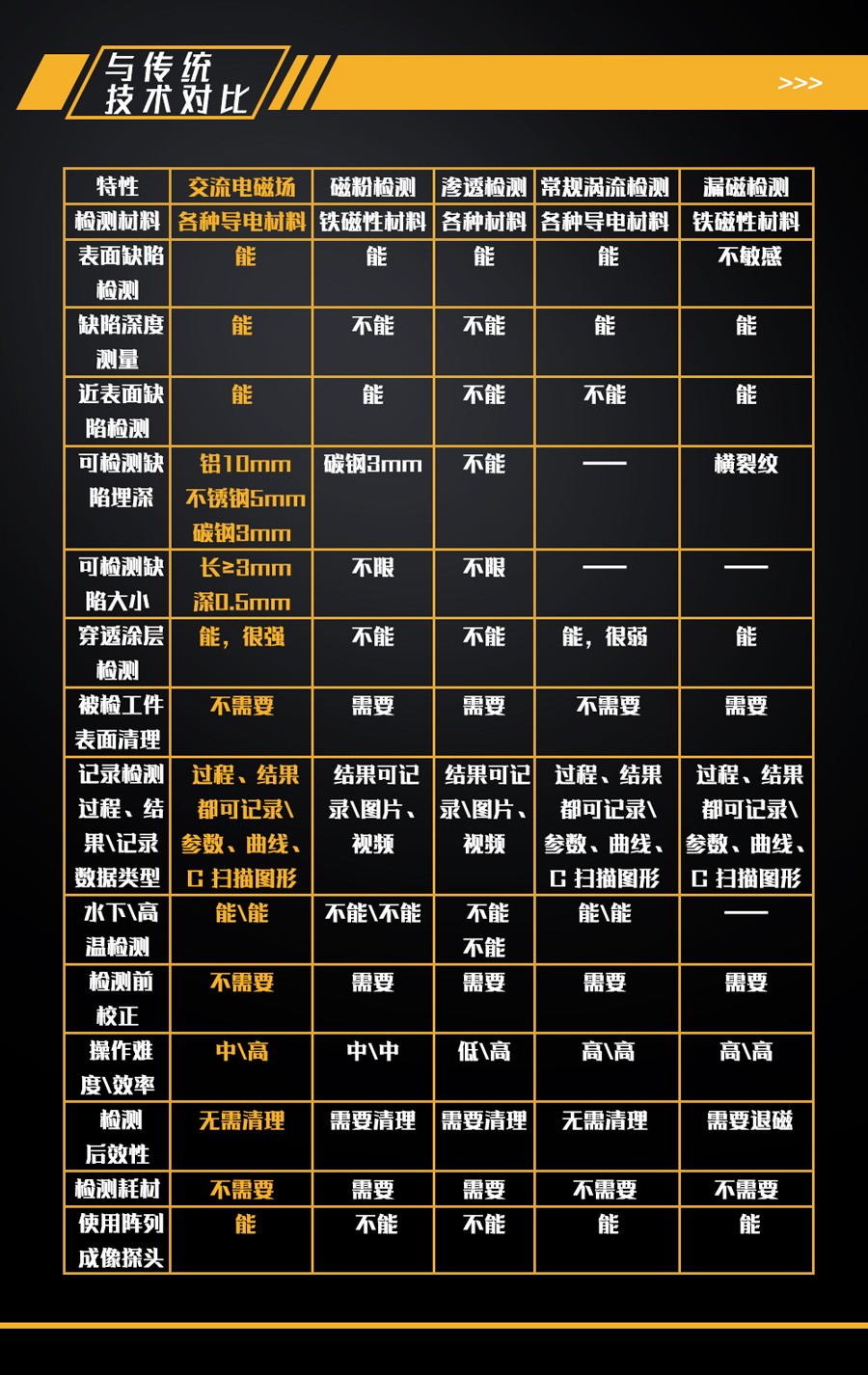 10、檢測近表面埋深缺陷深度:碳鋼3mm、不銹鋼5mm、鋁10mm;