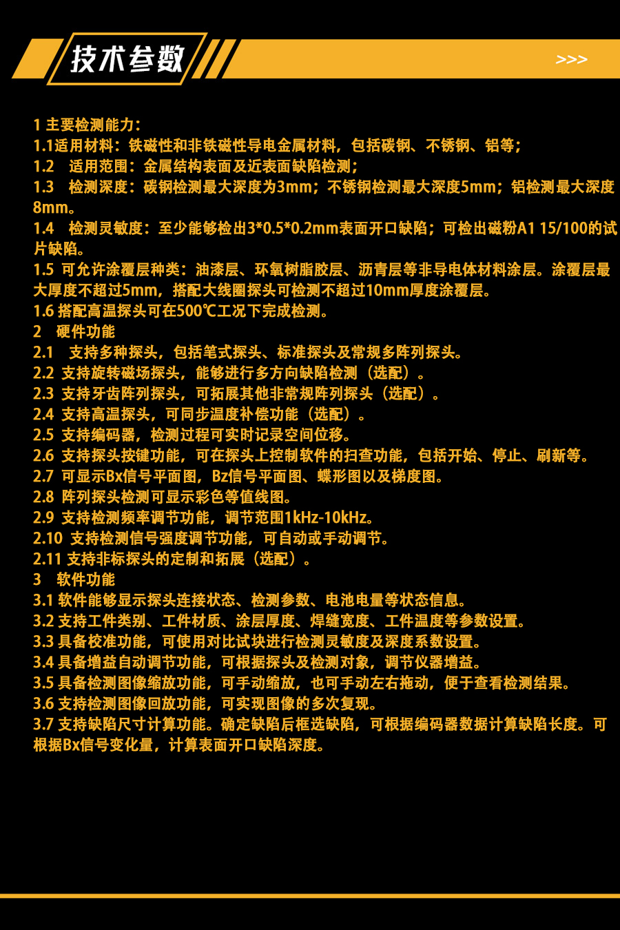 3、可檢測表面350℃高溫中的非疲勞裂紋;可用于水下500m深度結構缺陷檢測;
